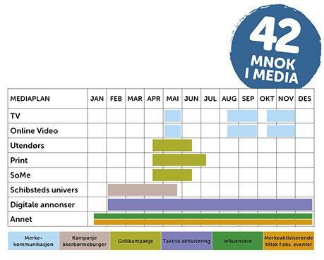 Omfattende grillkampanje fra uke 19-23 i media Bred merkekommunikasjonskampanje Always on løp i SoMe hele halvåret Influencer samarbeid hele halvåret
