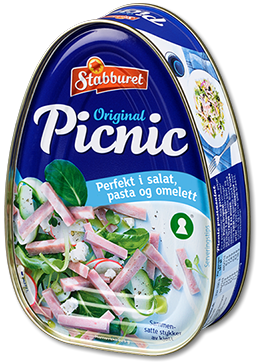 Stabburet Original Picnic - mange muligheter i én og samme boks! Picnic øker salget med 38% i vår – og sommerhalvåret Picnic på kampanje i sesong gir en økning på over 10x Smaksrikt svinekjøtt som passer både til kalde og varme retter. Serveringsforslag kalde retter: salater, smørbrød/pitabrød/lomper/fajitas. Også deilig i varme retter slik som omelett og som pizzafyll. Passer også både til kald og varm pasta! Dette gir Picnic gode muligheter for sameksponering! Nøkkelhullsmerket gjør det enklere å velge sunt