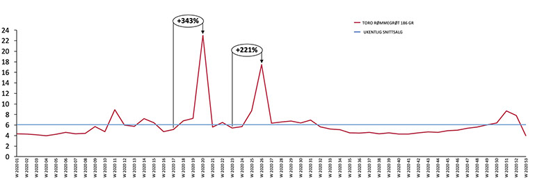 TORO Rømmegrøt - Salgsutvikling Salget øker med 343 % inn mot 17.mai og 220% inn mot 17.mai